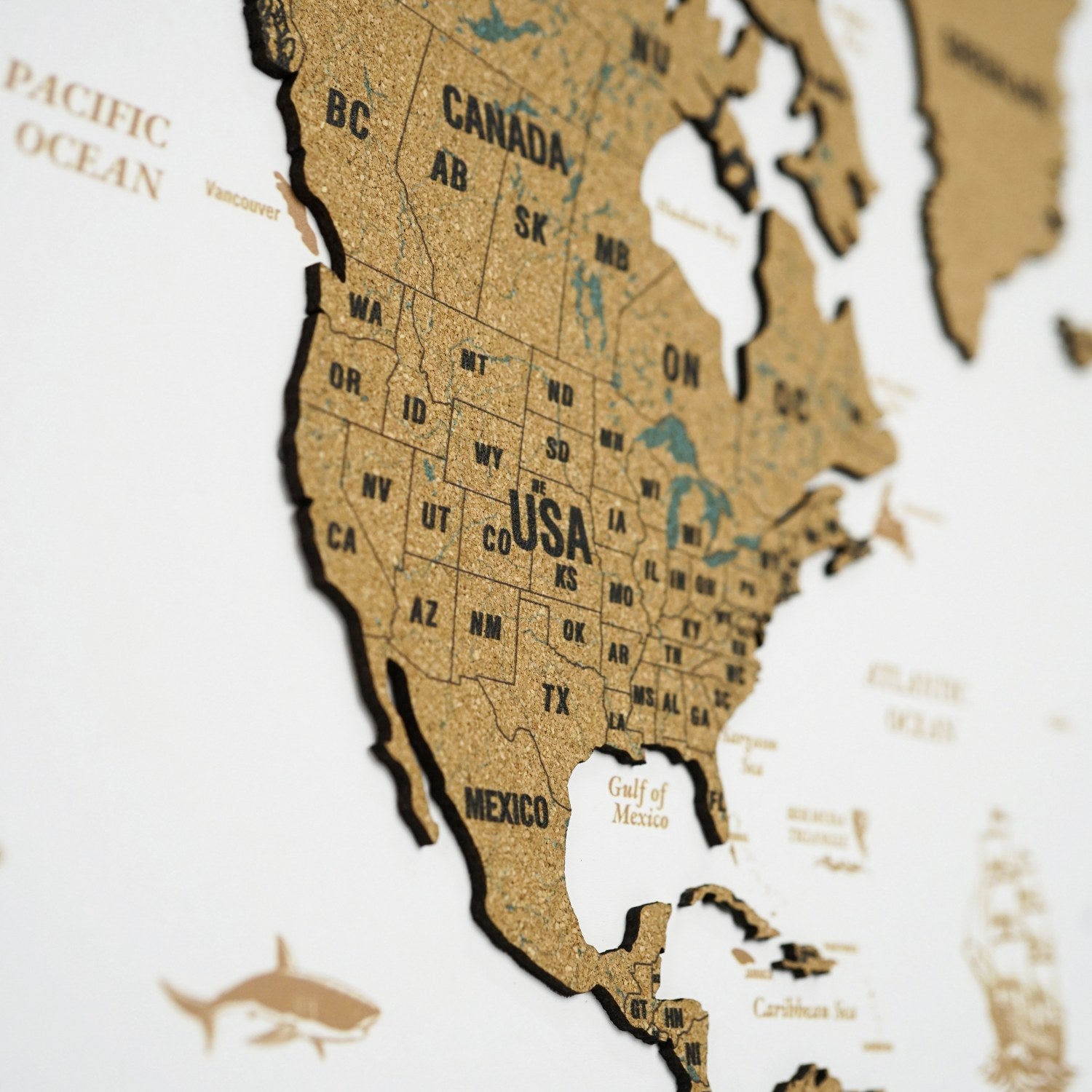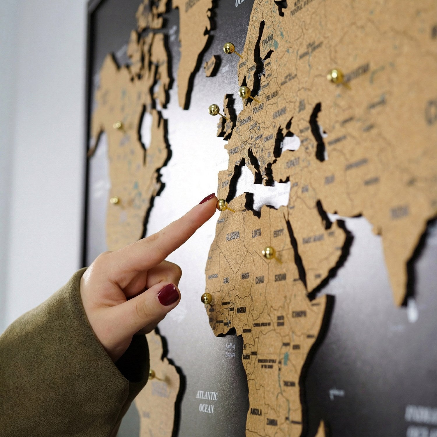 Elevate your space with this premium Framed Cork World Map. Expertly crafted and "Ready to Hang," this map combines functionality with a sophisticated finish. The sturdy outer frame adds a polished touch, making it a standout centerpiece for your living room, office, or hallway. Use push pins to mark your past travels and plan your future adventures on its high-quality natural cork surface.