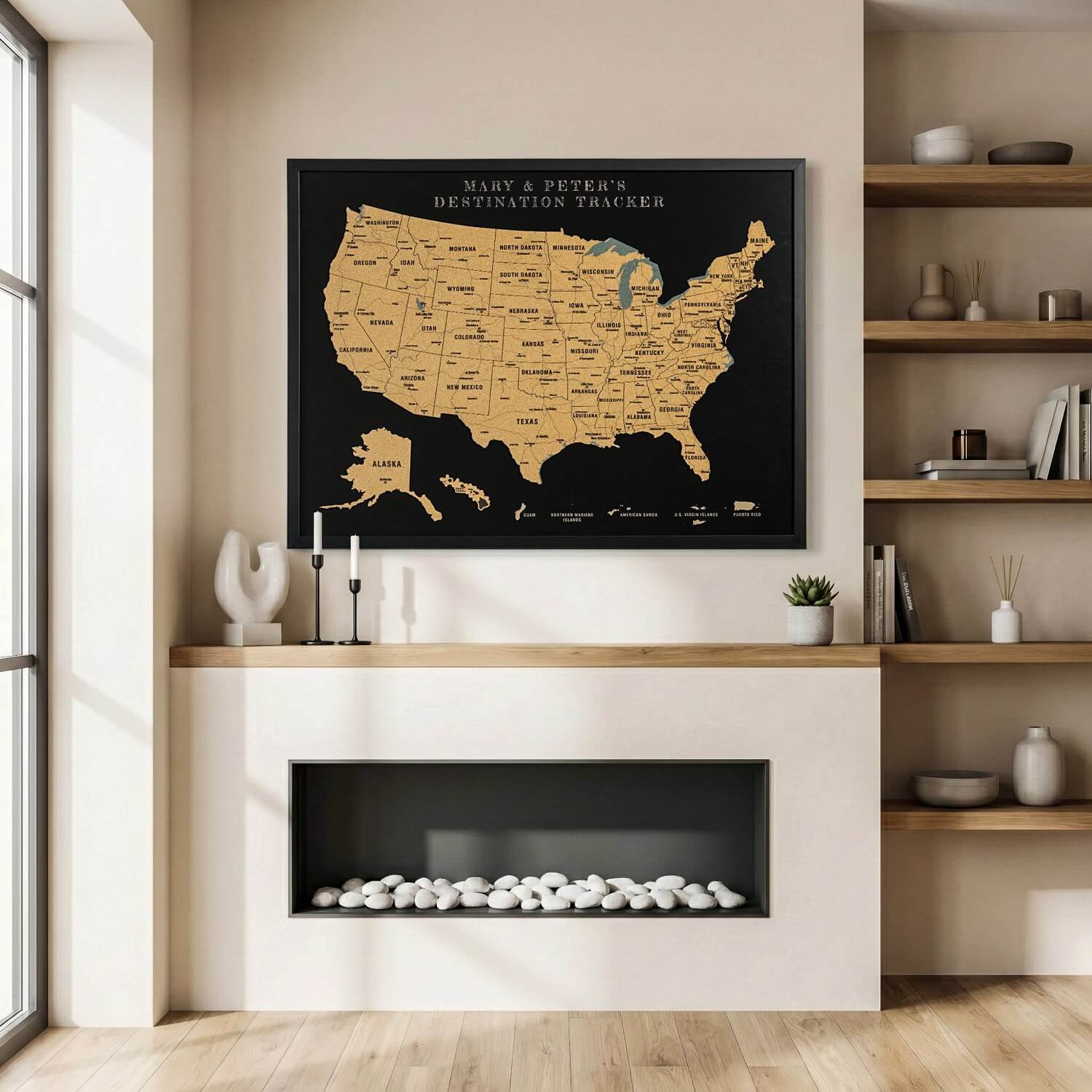 Framed Cork Map of the USA – Interactive Travel Pin Board