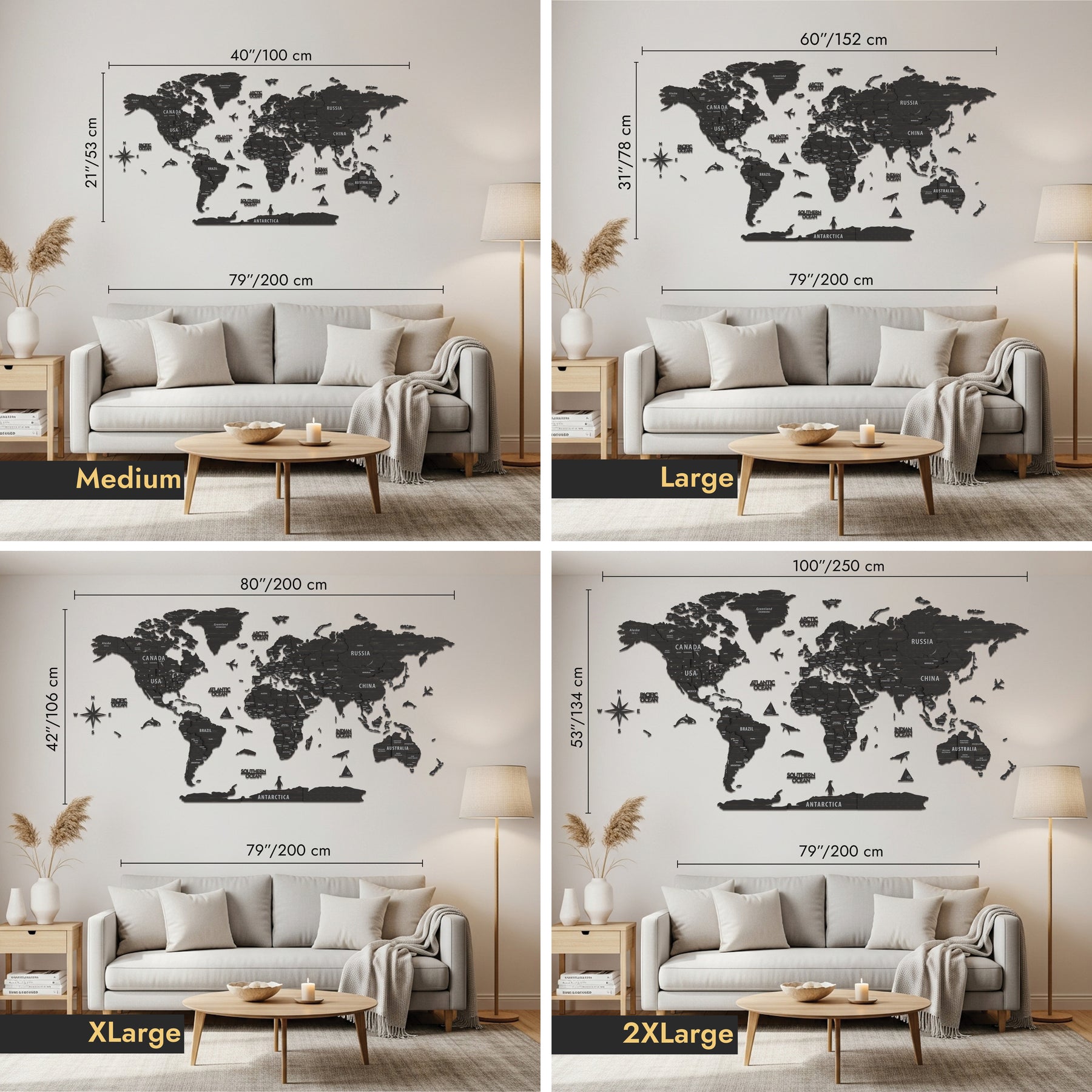 3D Wooden World Map For Wall - Measurements & Materials